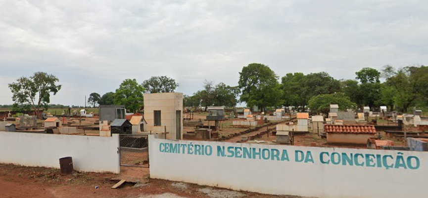 baixos ao redor e portão principal simples, oferecendo um espaço funcional para os rituais de sepultamento. Os jazigos estão organizados em quadras, com caminhos de terra batida entre eles. Embora falte um paisagismo formal, algumas árvores nativas surgem espontaneamente, oferecendo sombra pontual. Assim, mesmo com infraestrutura limitada, o cemitério atende às necessidades da população com dignidade e serenidade.